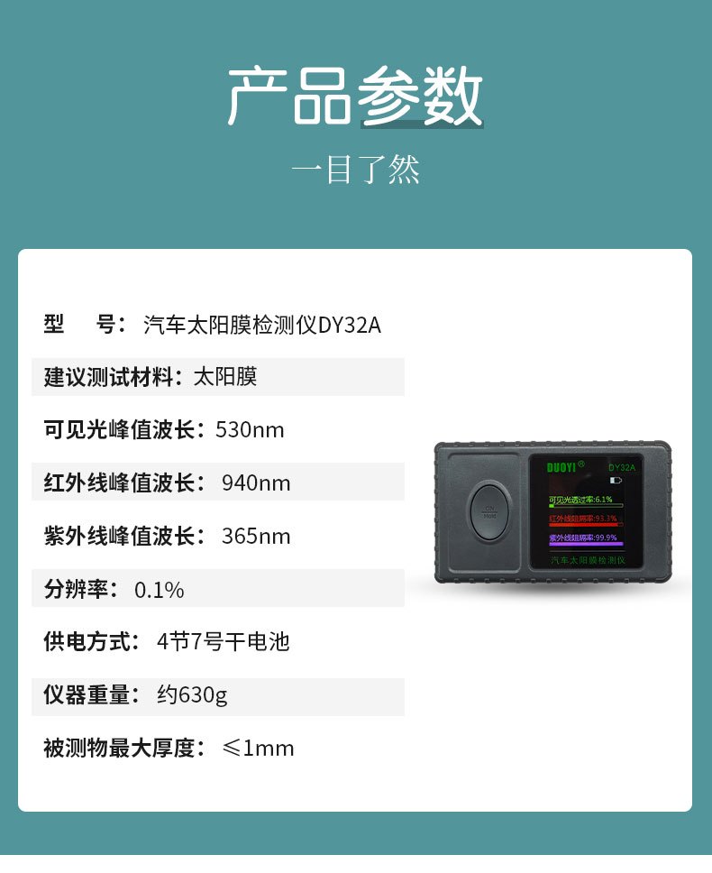 便携太阳膜测试仪多一DY32A红外线紫外线阻隔率透光率汽车膜检测